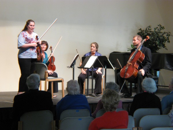 Since its formation in the millennium year 2000, the California Quartet has emerged as one of the most promising young chamber ensembles in the United States. Passionate and personable, the members of the CQ naturally bring the audience and performers closer through thoughtful and convincing musical interpretations, and by integrating lively and relevant commentary about each work they perform. Their program, presented in May 2009, celebrated the music of Mexico, and included music by Chavez, Revueltas, and Beethoven. (Click photo to enlarge.)