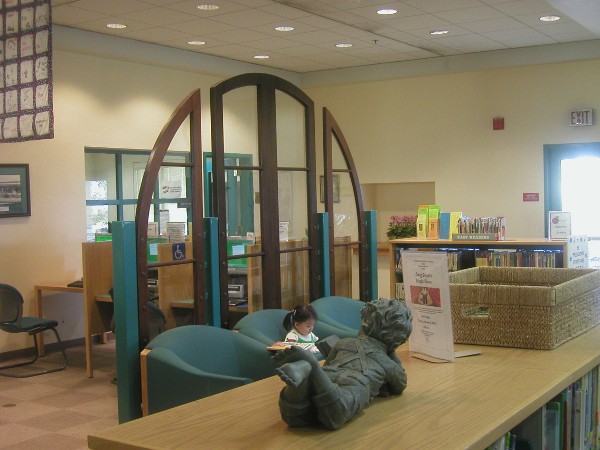 As you walk through the 21,700 square-foot library center, note that artifacts from the Meanley home have been incorporated into the building. The home's original front doors are now located between the Children's Area and the Reference Area. (Click photo to enlarge.)