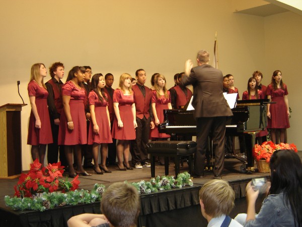 Our December 2008 Holiday Concert was presented by a chorale from the San Diego School of Creative and Performing Arts Magnet School. This is a school for students with a strong interest in the arts, and offers a rigorous academic program in conjunction with comprehensive study in the visual and performing arts taught by teachers who are active arts professionals as well as credentialed educators. (Click photo to enlarge.)